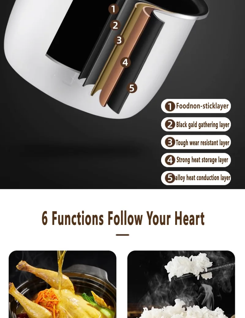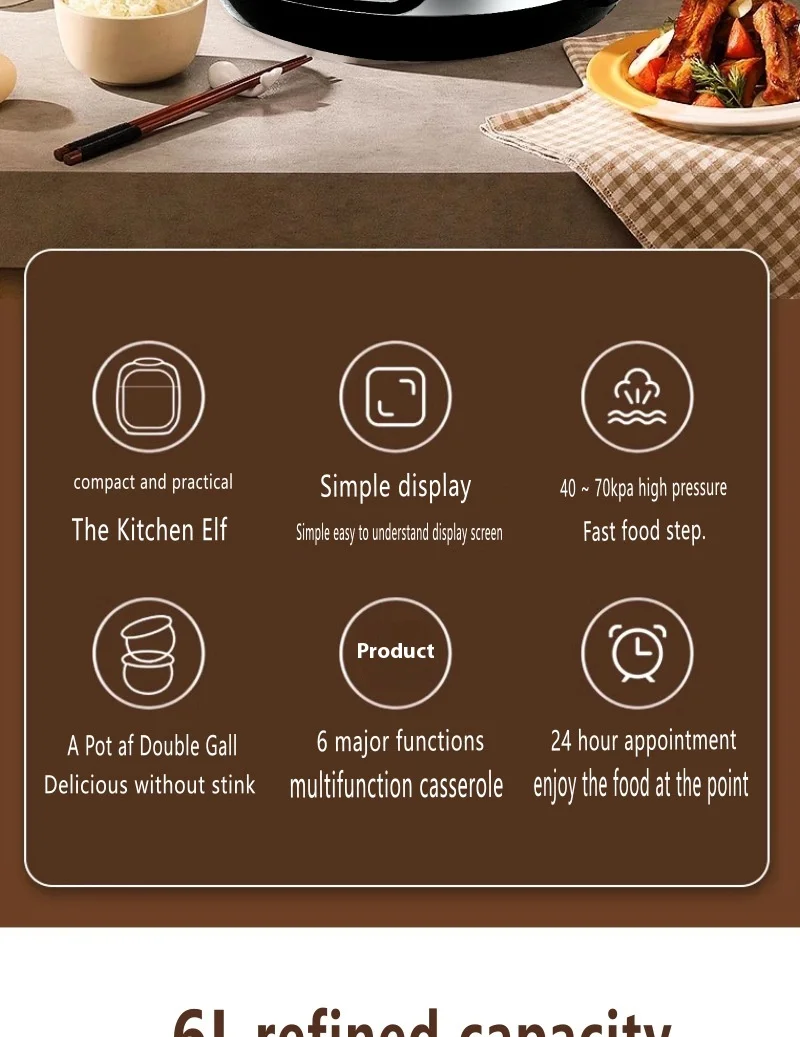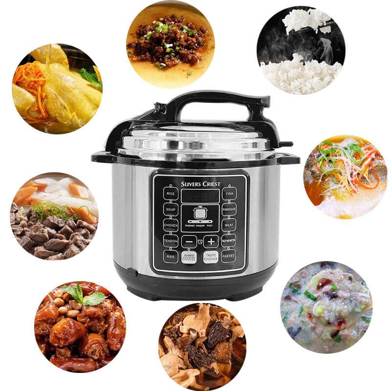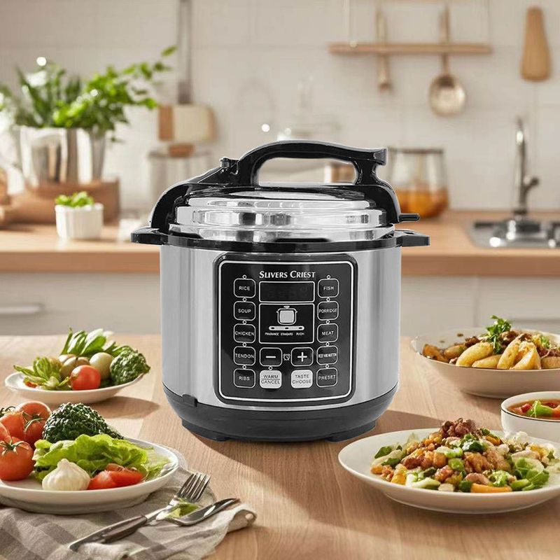Hot Sale 6L Smart Electric Pressure Cooker Slow Cooker & Rice Cooker Stainless Steel Housing for Household Use Silver Crest