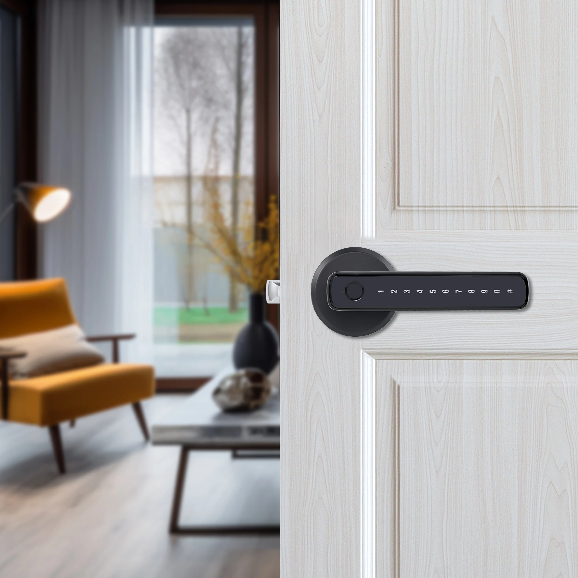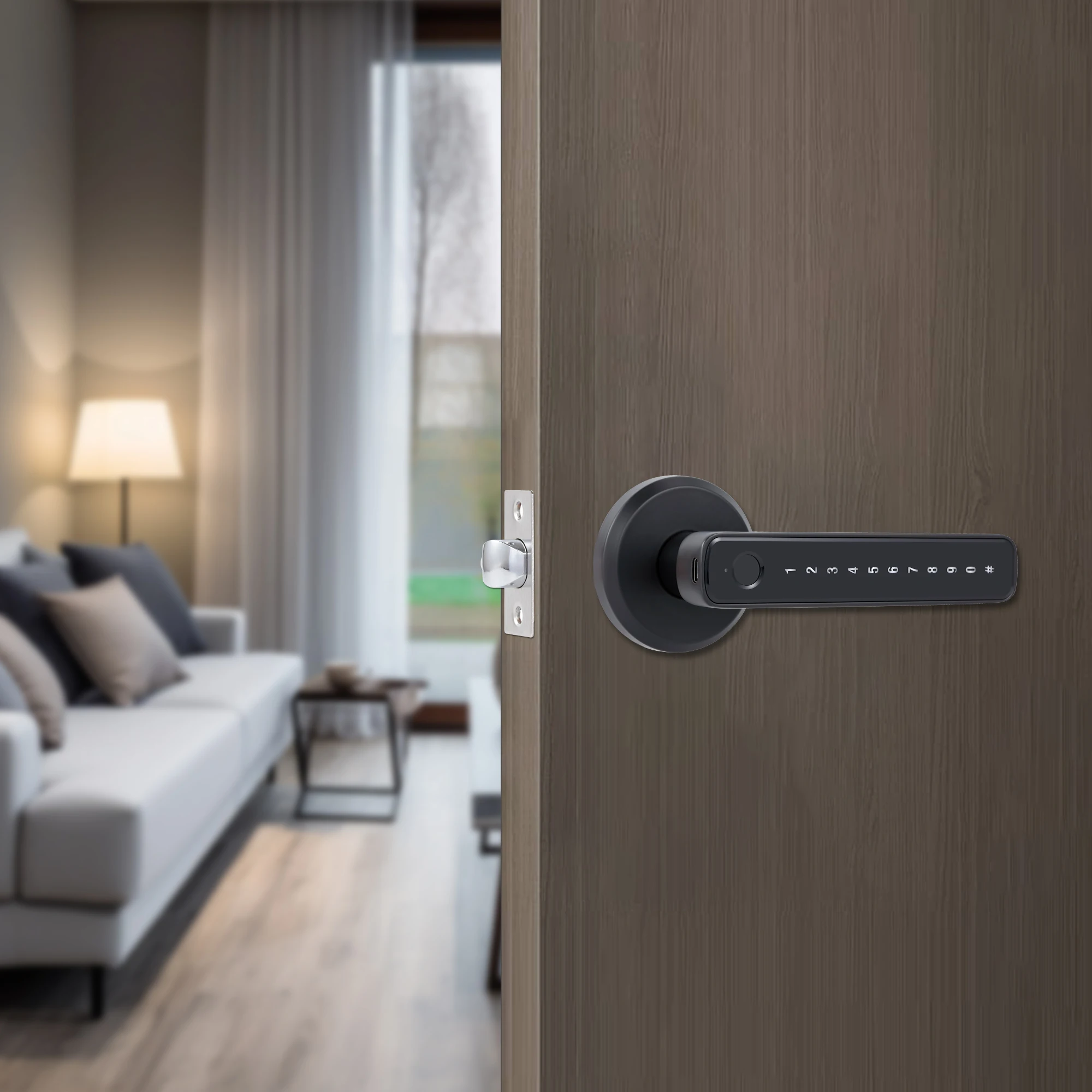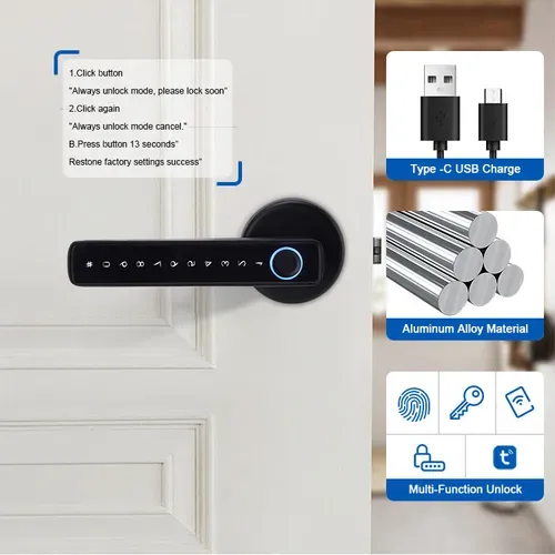 Keyless entry electric door lock smart handle latch code fingerprint key home digital locks