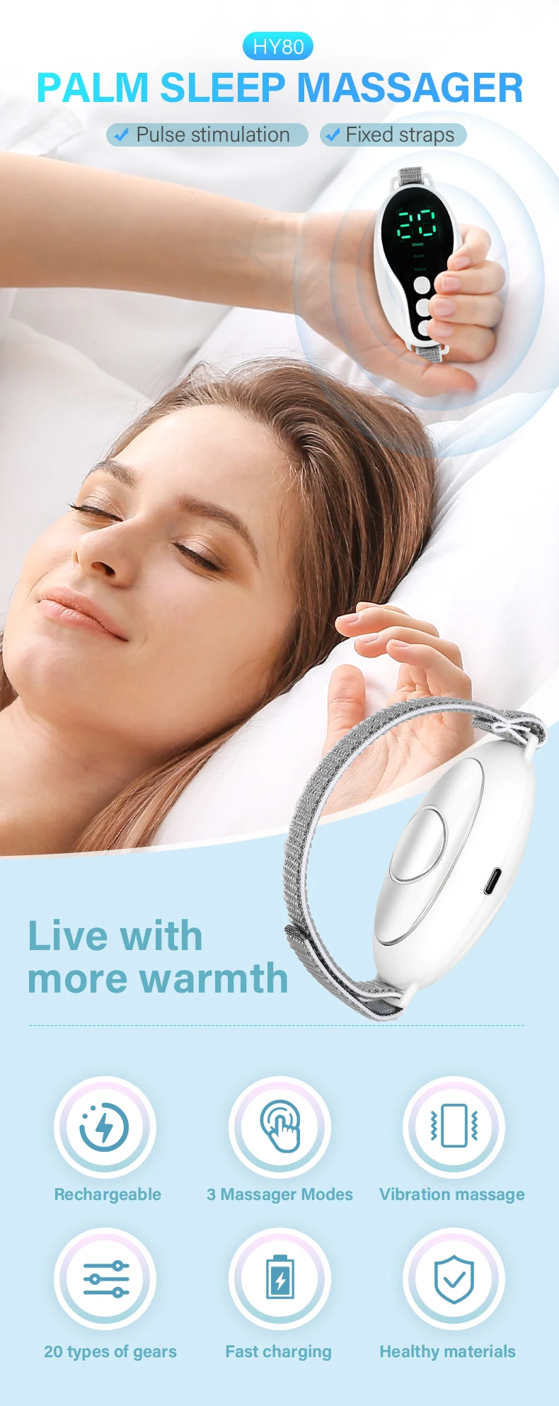 Home Use Electric Handheld Sleep Aid Device Micro Current Intelligent Stress Relief Hand Massager for Insomnia & Anxiety