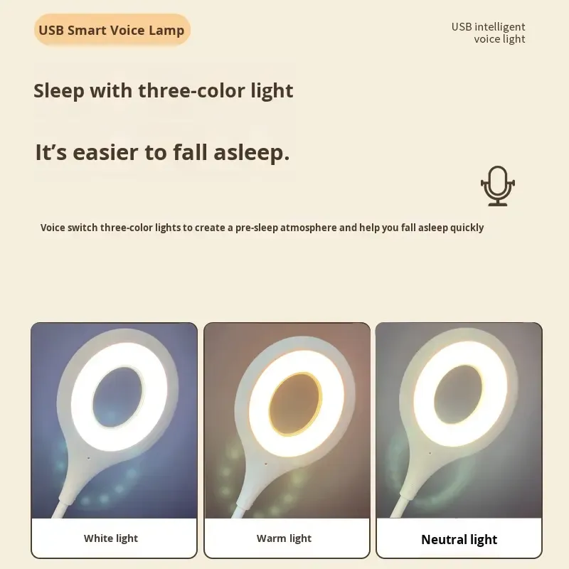 Eye protection Intelligent Voice Control Small Night Light USB Intelligent Voice Control Tricolor Light