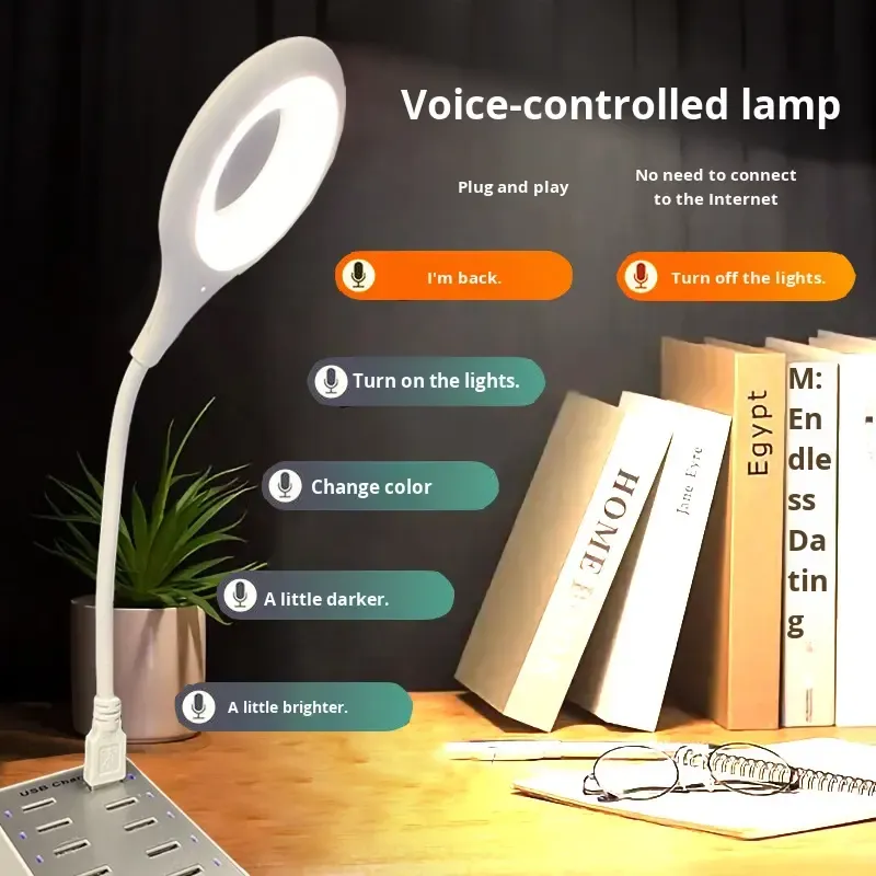 Modern USB Smart Voice LED Mini Portable Reading Small Table Lamp Plug-in Battery Voice-Controlled Night Light for Bedroom