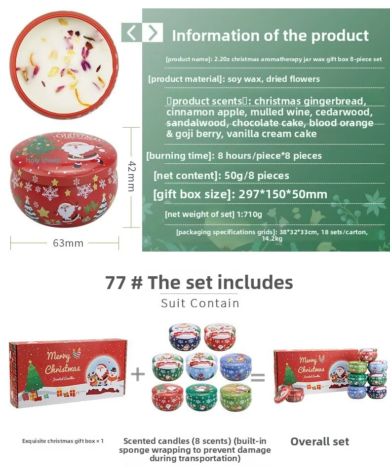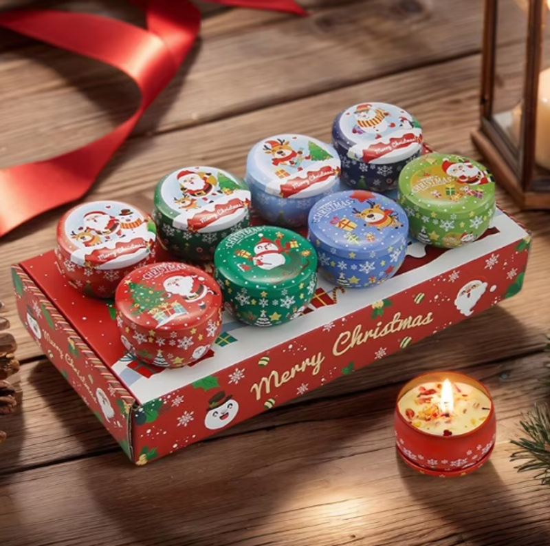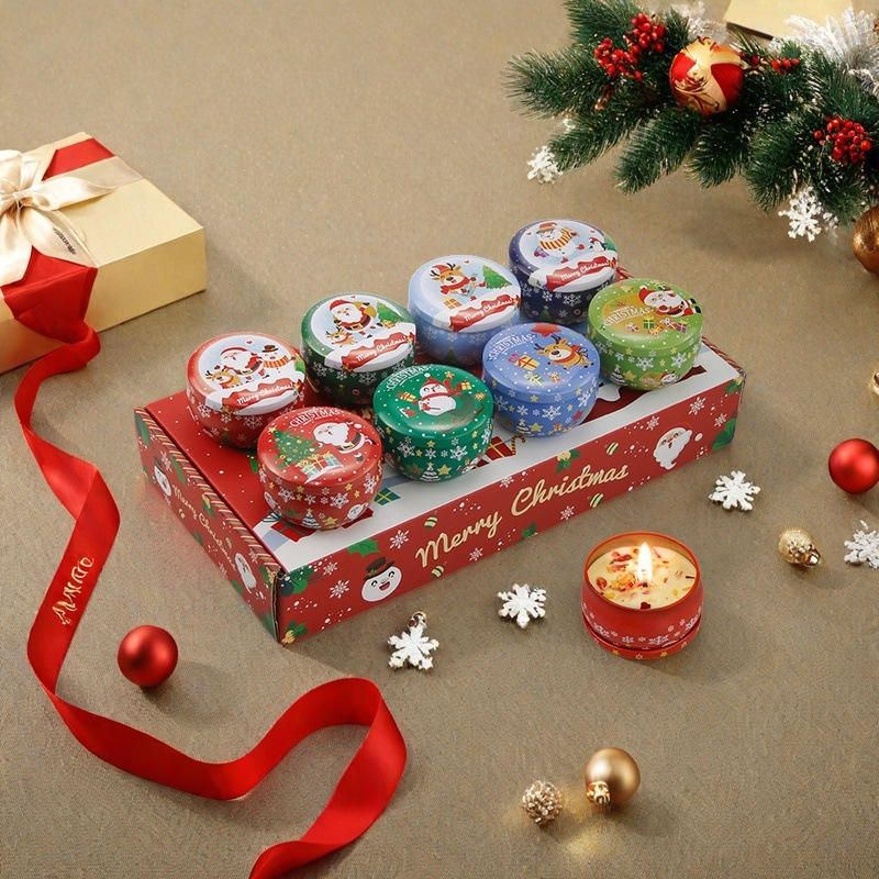 Luxury Christmas Soy Wax Jar Candles 8 Piece Set New Scented Christmas Party Decorations Gift Box Aromatherapy Candles